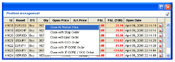 One of the specificity of the AmerexFx Java Trading Platform is the possibility to manage many open positions in the same currency pair.